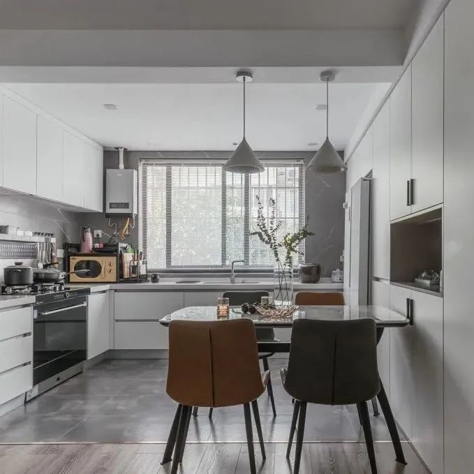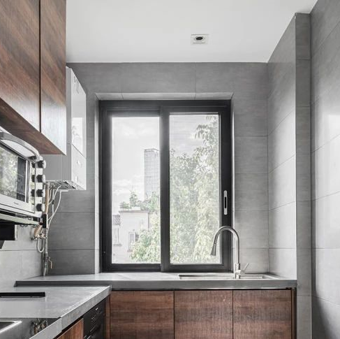 如果家里的厨房空间够大,安装平开窗是一个不错的选择。因为平开窗保温隔热、密封性能更好,全开启拥有更好的通风换气效果。也可以设计大面积玻璃窗,拥有更广阔的视野、更充足的光线。