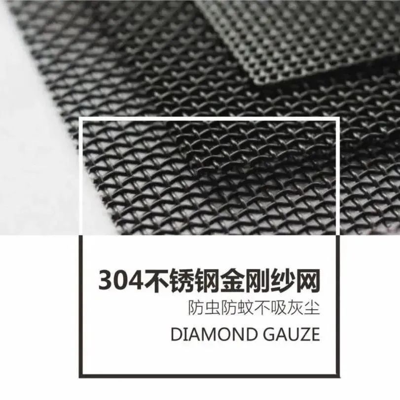 金刚纱网是由高强度不锈钢丝经过重型精密织机制造而成。金刚纱网具有硬度好、强度高的优点。优质的金刚纱窗经过电泳涂漆处理,不易受雨水、阳光暴晒或者其他恶劣环境风化腐蚀,而且纵横交织结构(线径有0.8mm粗)不但能防止蚊虫进入室内,而且还具备了不错的防撬、抗剪能力,因而更好地弥补了隐形纱窗防护能力的不足,大幅提升家居整体的安全性能。