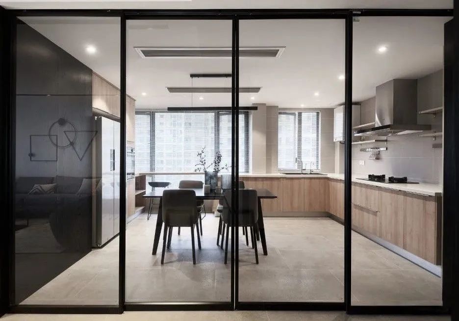 对采光差的餐厅进行墙体改造,不如用一扇地轨式推拉门,引入光线,又不会在吃饭时串味。