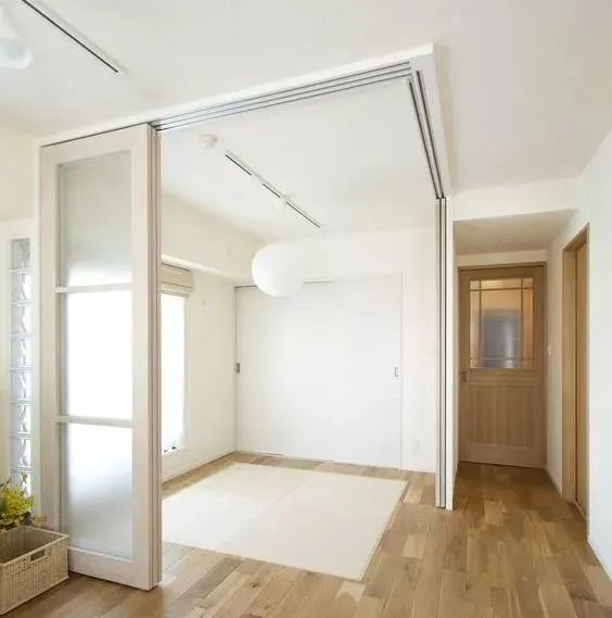 室内想隔出一小间,但又不想破坏地面,可以用吊轨推拉门,打开、闭合使用都更灵活。