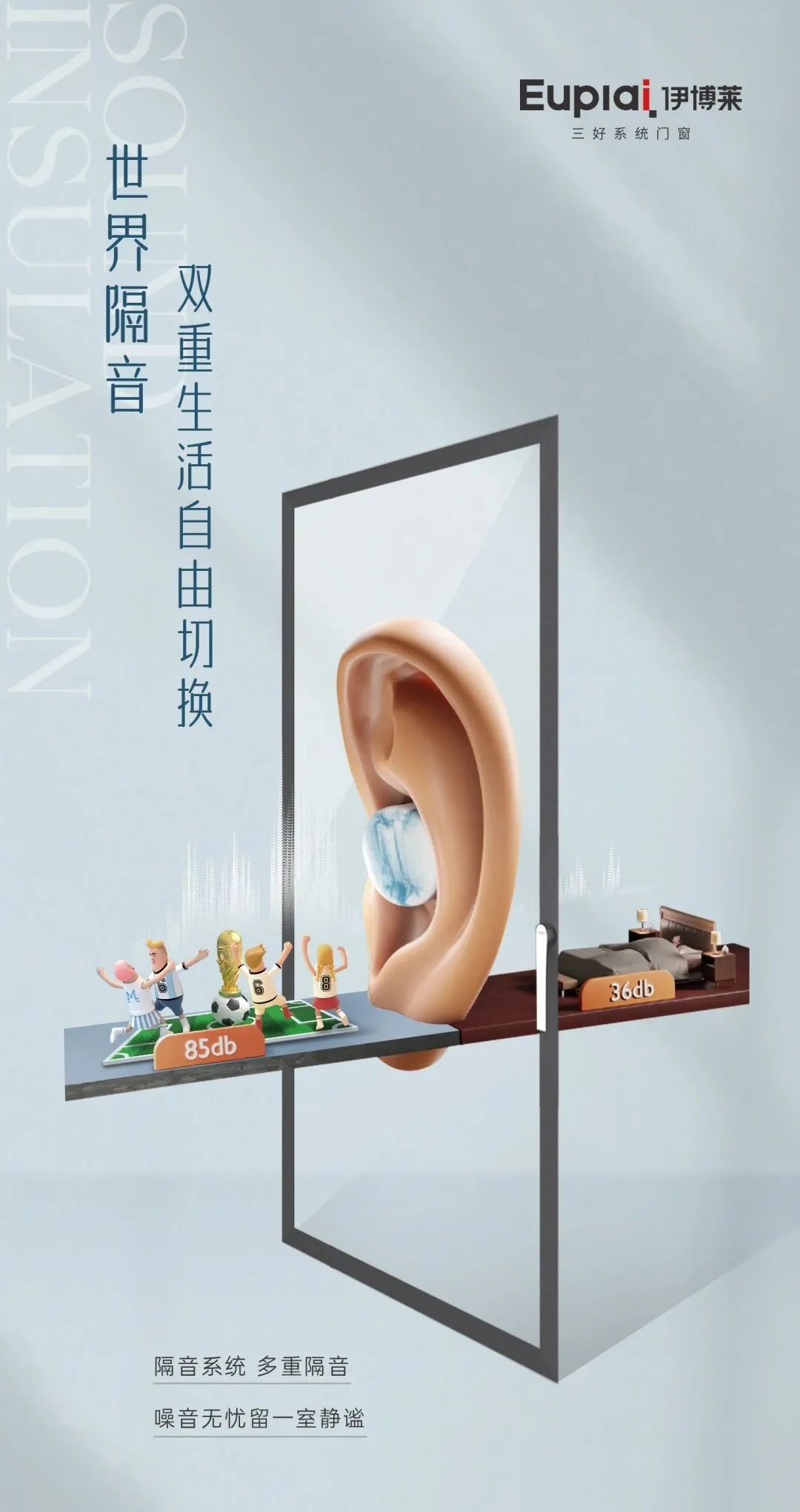 通宵达旦,彻夜呐喊,也不影响他人正常休息,尽情地为球员们欢呼呐喊。伊博莱门窗为您提供高品质的精致人居生活,守护您的自由狂欢时间!