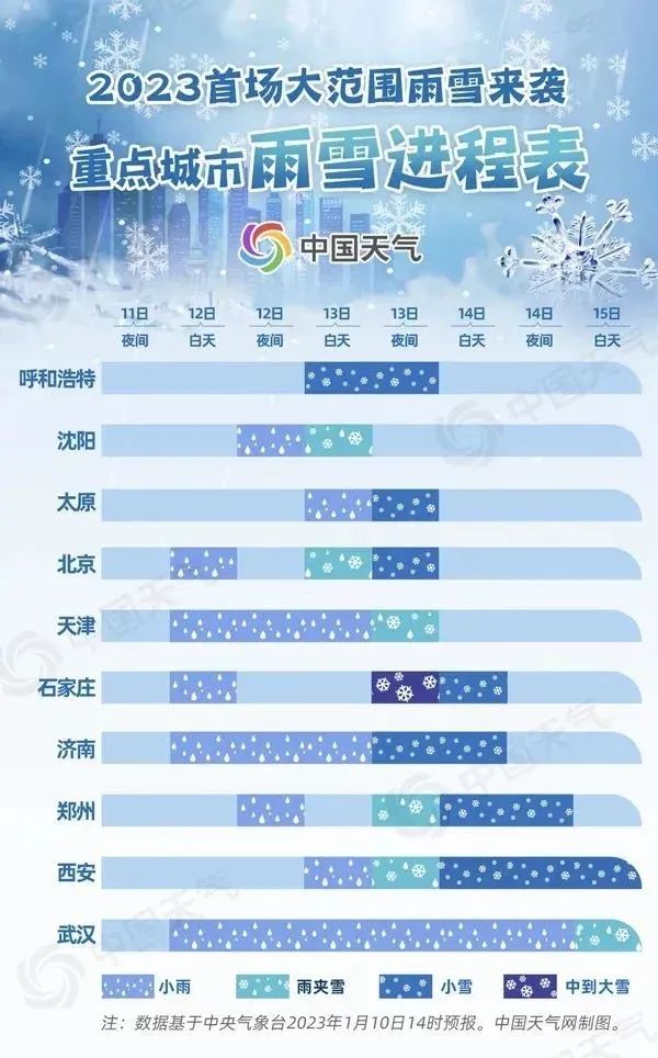 时值1月,我国华北,黄淮等地今冬的初雪还迟迟未到,北方小伙伴们对雪花的期待值已经拉满。据中央气象台消息,受强冷空气及南支槽影响,11日至15日,我国大部分地区将先后出现雨雪及大风降温天气。一场寒潮将改变天气格局,开启今年首场大范围雨雪,京津冀等不少城市有望迎来初雪。