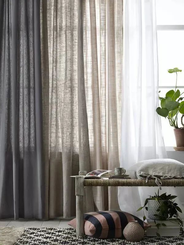 厚窗帘能够吸收一部分噪音,所以,除了一层薄纱窗帘在白天采光外,可再增加一道厚窗帘,进一步提升家居隔音效果。