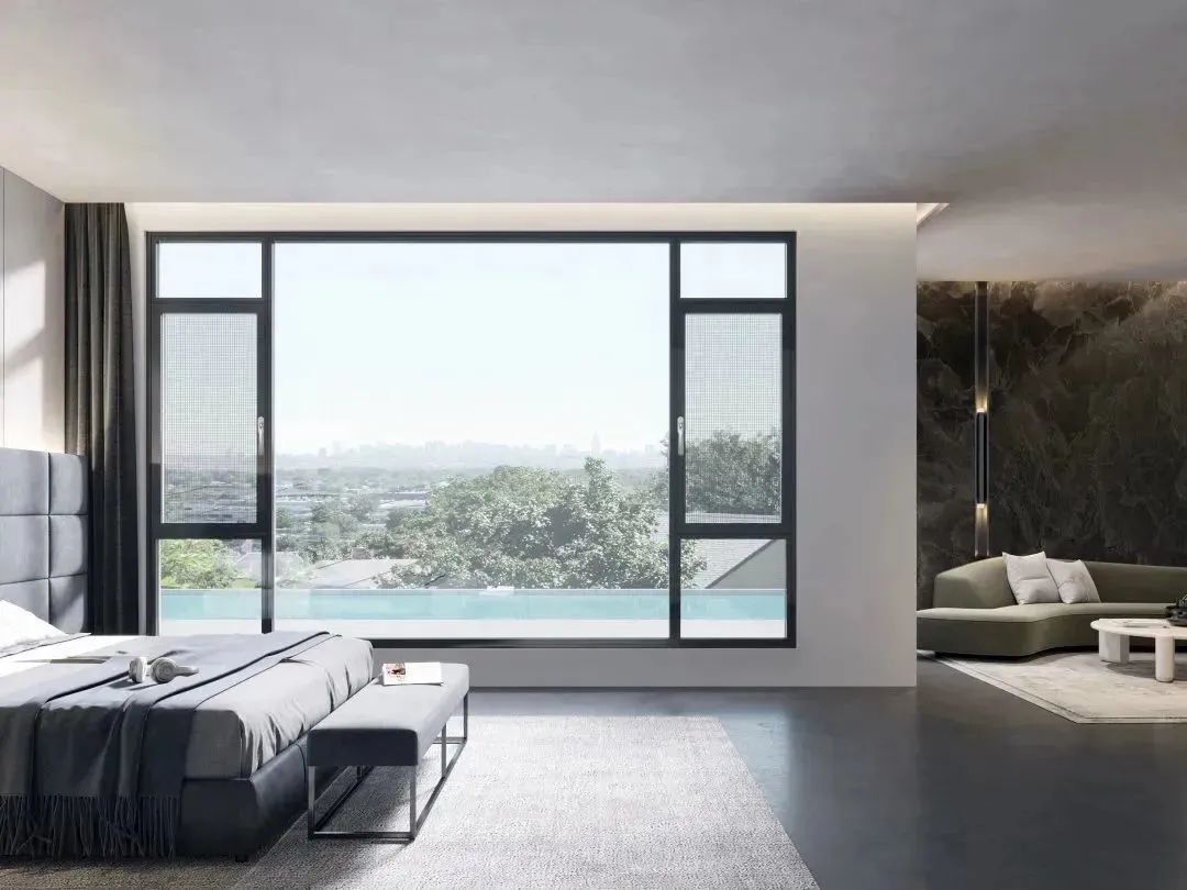 玻璃面积占比大,单层玻璃不能有效隔音,一定选双面中空或三玻两腔的玻璃结构。因为双面或三面中空玻璃时,声音在玻璃内不断反射、折射而大幅衰减,实现明显隔音。